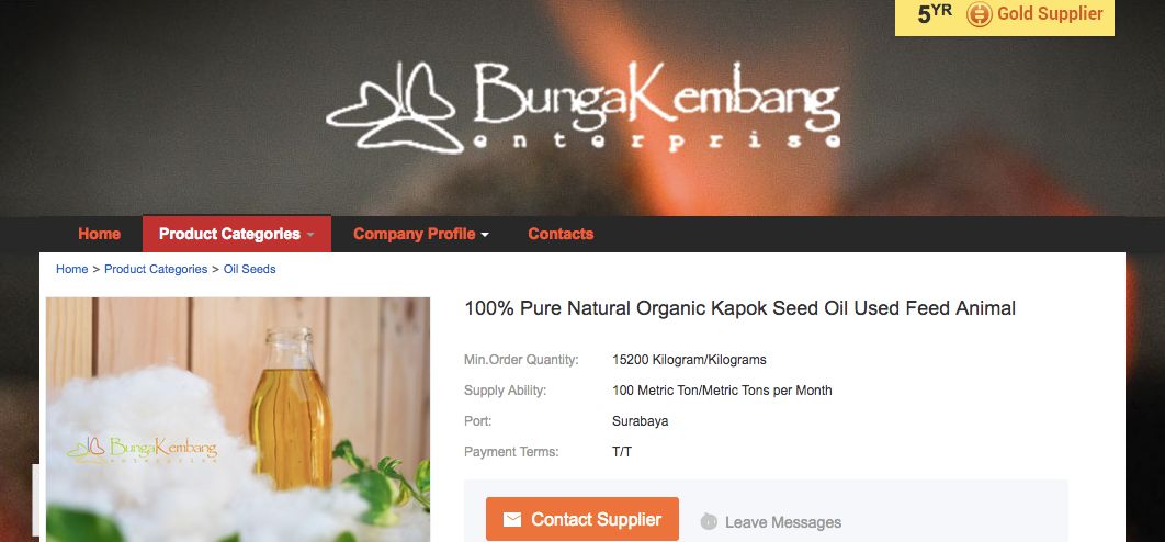 迪亞回憶,十年前,電商在印尼還是個新鮮事物。一定的電腦知識和英文門檻,讓很多印尼中小工廠對電商望而卻步,整個阿里巴巴國際站上的印尼產品也屈指可數。翻了幾天公開詢盤後,迪亞發現來自日本和美國的買家都在尋找一款十分小眾的產品——木棉籽油。
